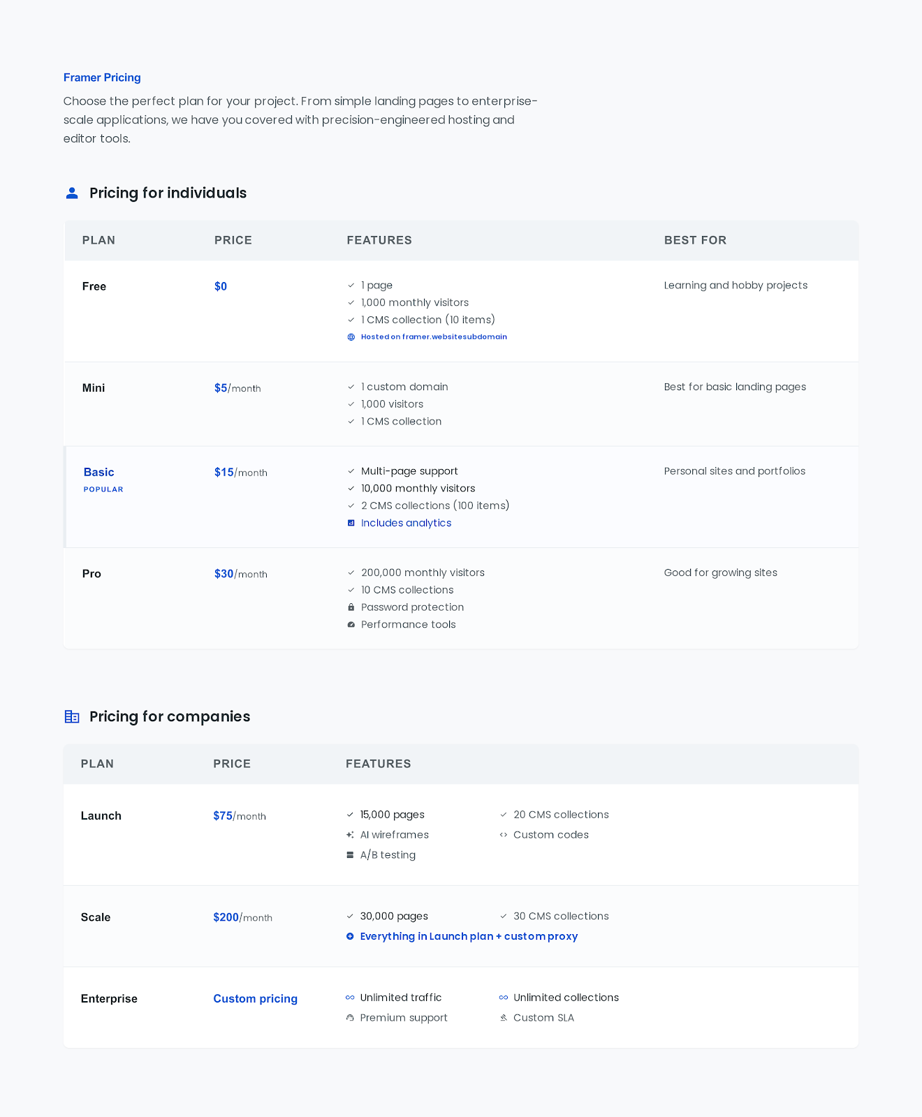 Is there a free version ofFramer or Webflow available?